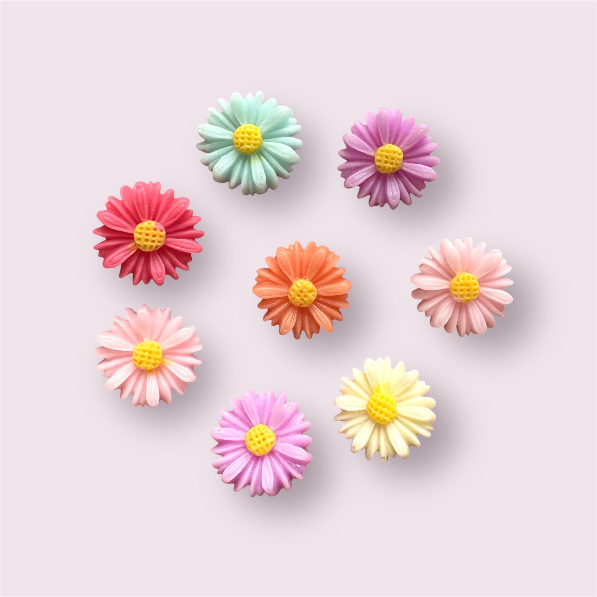 Set of pastel mix coloured resin flowers. The cabochons are flat back and measure 13mm