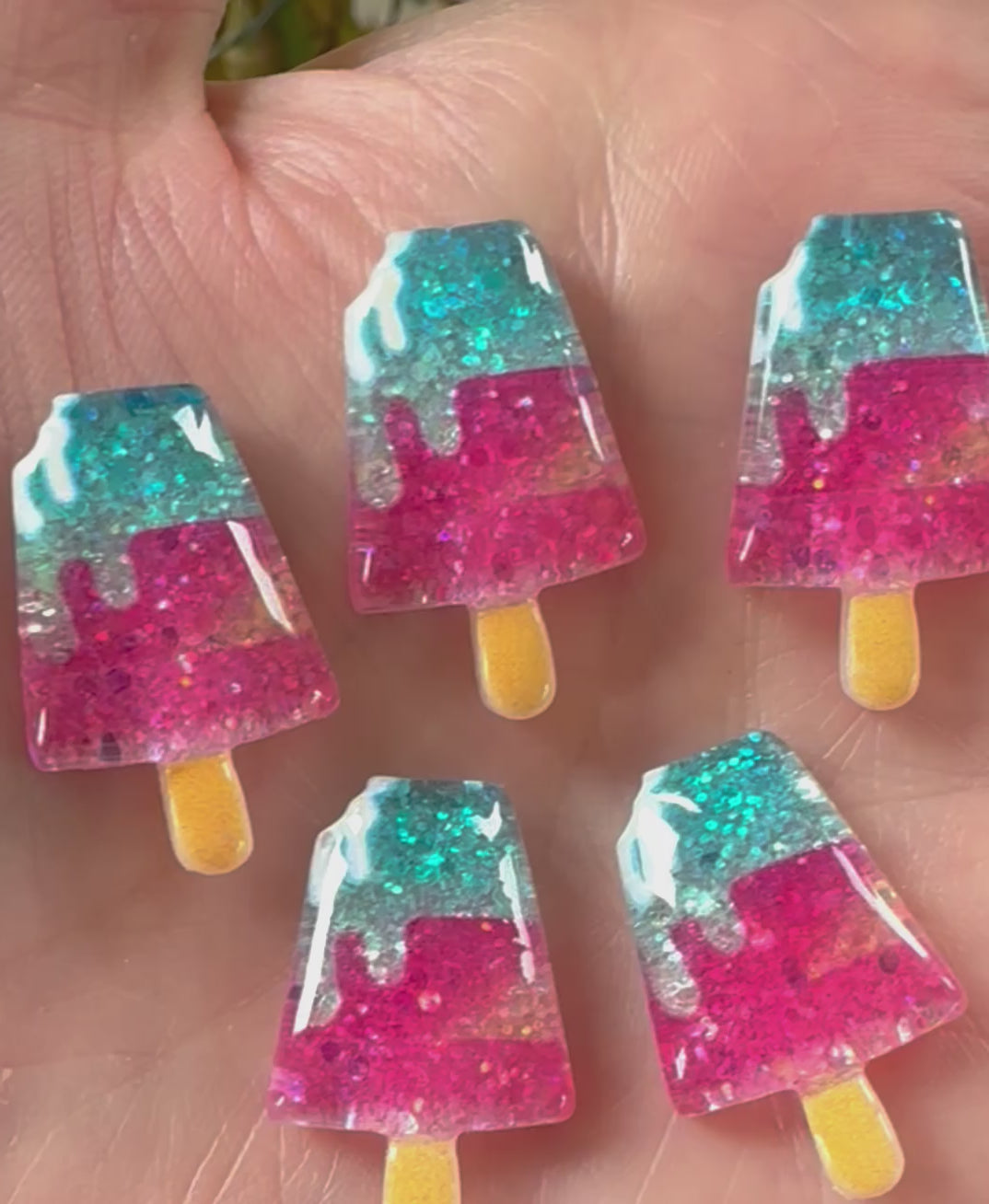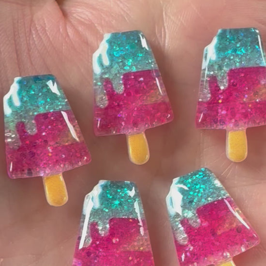 Ice lolly resin cabochons, pink and blue 24mm