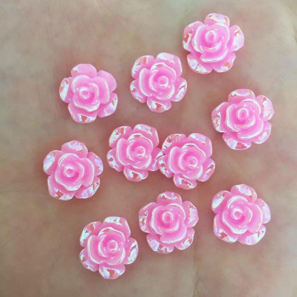 Pink rose flower cabochon, 12mm